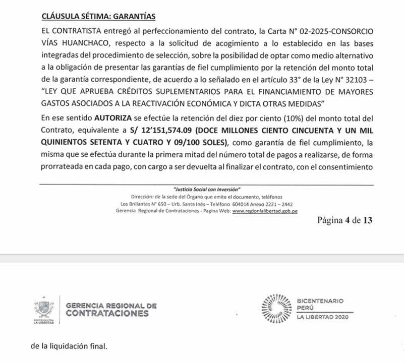 El primer contrato que obtuvo en La Libertad, el 31 de enero de este año fue por 12 millones 515 mil soles, para la construcción del Corredor Vial Norte, un tramo de 9 kilómetros que conecta a Trujillo con Huanchaco. El 8 de mayo pasado obtuvo el segundo contrato en ese departamento: 194 millones 580 mil soles para el mejoramiento del Hospital Provincial de Virú.
