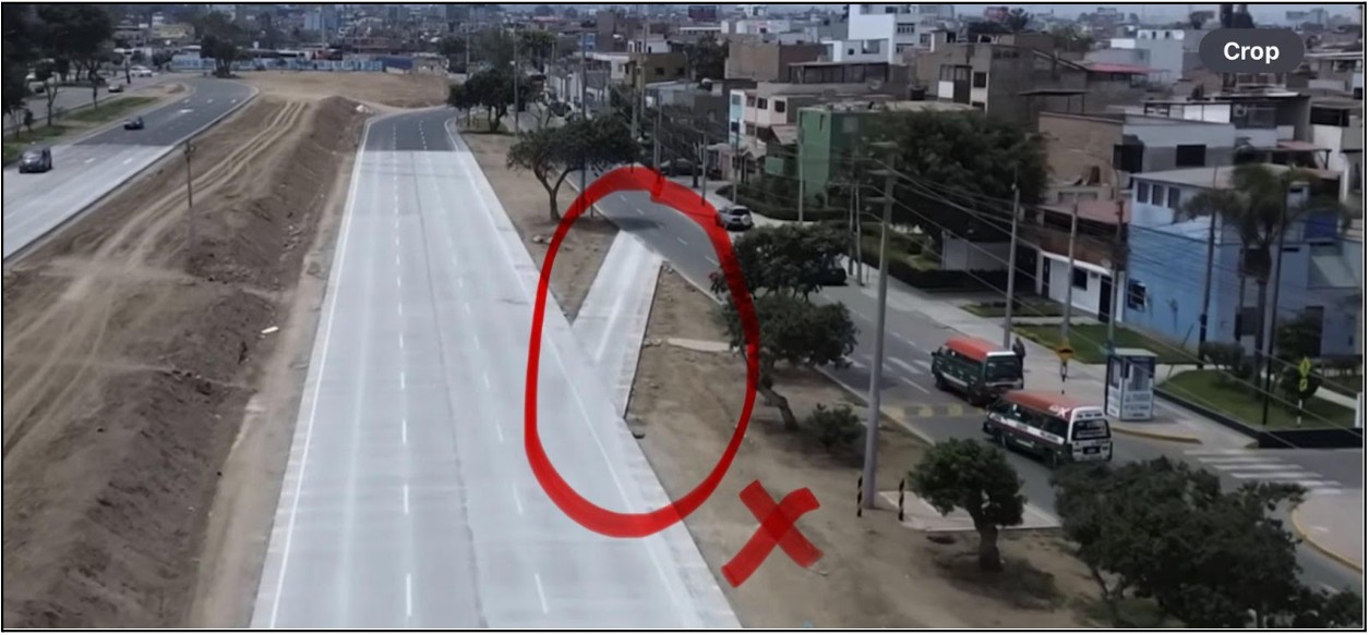 Un elemento fundamental en los expedientes técnicos es contar con la ingeniería detallada y en ese sentido conocerlo hubiera podido prevenir las graves violaciones a los manuales de infraestructura vial que señaló (7) el ingeniero en tránsito David Fairlie en el diseño geométrico y señalizaciones. Aquí destacan conexiones muy forzadas (con ángulos muy abiertos) entre vía principal y auxiliar, que no cumplen con dimensiones necesarias, carriles que desaparecen, confluencias sin preferencia clara, que se permita doblar a la izquierda en más de un carril y pasar de tres carriles a cuatro para volverse a reducir al llegar a la Panamericana Sur, además de señales inventadas que no existen en los manuales. Por si quedan dudas de estos horrores más que errores, Contraloría (8) comprobó y señaló buena parte de estas deficiencias y se observó que los muros Jersey se estaban construyendo en campo, en lugar de ser prefabricados y trasladados tal como se presupuestó en la información aún parcial alcanzada a la entidad supervisora.