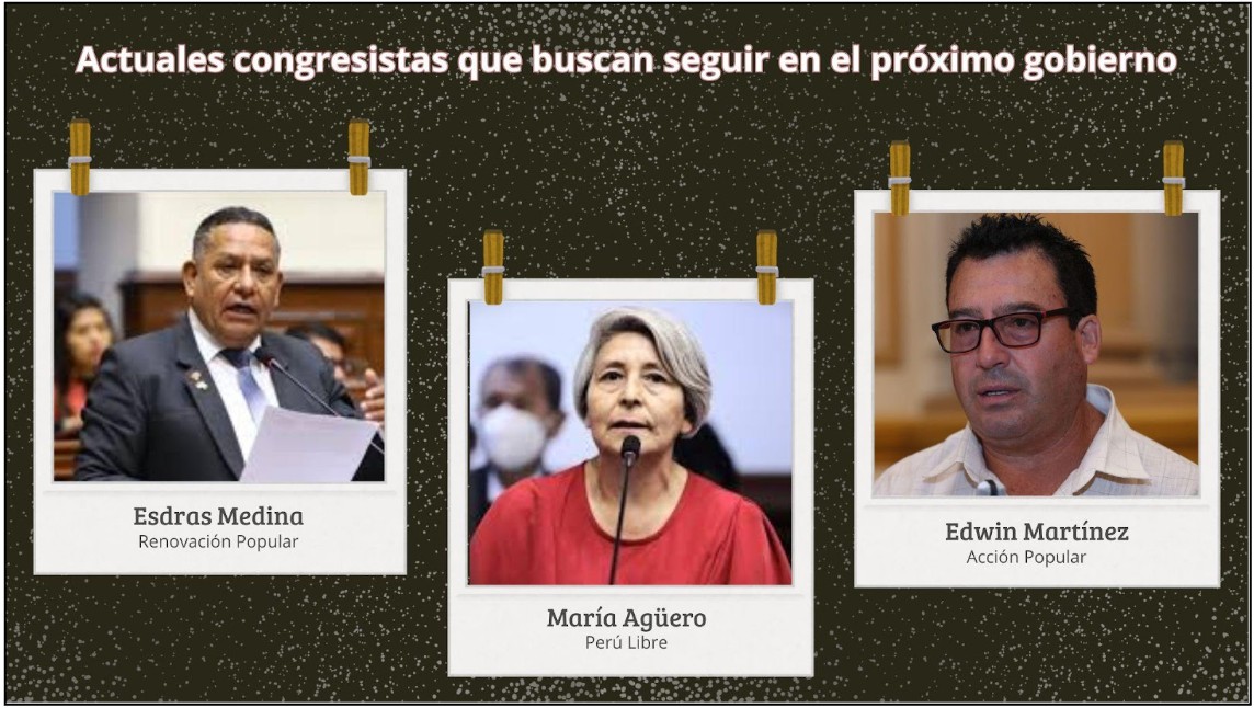 Entre ellos está el congresista Ricardo Esdras Medina, que busca ser diputado con el número uno por Renovación Popular. El parlamentario no ha estado exento de críticas e investigaciones, una de las últimas es su investigación por tráfico de influencias tras revelarse que habría intercedido ante la rectora de la Universidad Nacional del Callao para la contratación de su hijo, a cambio de incorporar en el Congreso a la hija de la rectora.