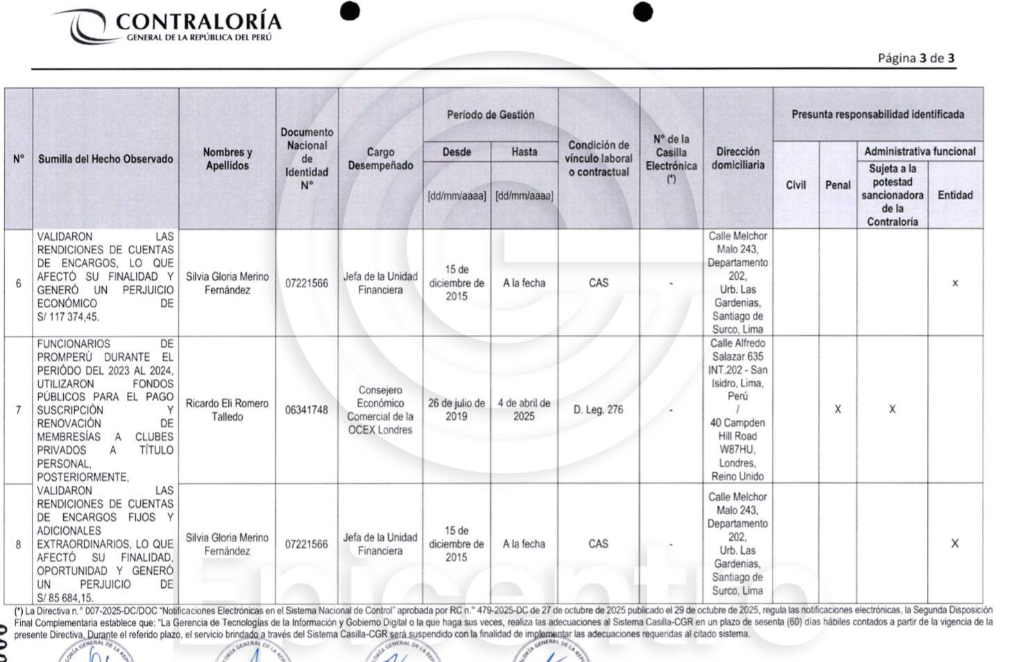 Cuadro de la CGR en el que detalla que Romero Talledo tiene una presunta responsabilidad penal. Foto: captura CGR.