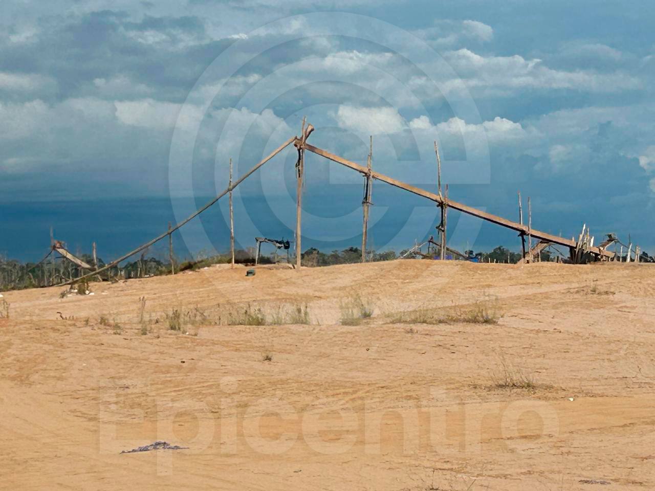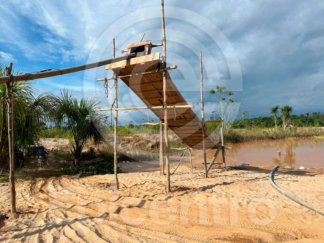 La cuatrimoto en la que iba fue la última en llegar. La comitiva se había encontrado con una poza en donde cuatro hombres trabajaban para instalar un "balsa" e iniciar la extracción de oro. Los mineros estaban sentados a un lado mientras los interrogaban. "¿Saben que están en la Reserva, no?", "Ahora se van detenidos", les dijeron. En la poza ya había un "balsa" armada con sus mangueras, la bomba de succión y la "traca". El motor todavía no estaba montado en la "balsa" y la "tolva", si bien lucía terminada, no tenía la estructura de base para ser instalada por encima de la "balsa" y así conectarse con las mangueras. Había también varios timbos de combustible repletos. Según me dijeron, por el estado en que encontramos la habilitación de la "balsa", las operaciones de extracción estaban a punto de empezar.
